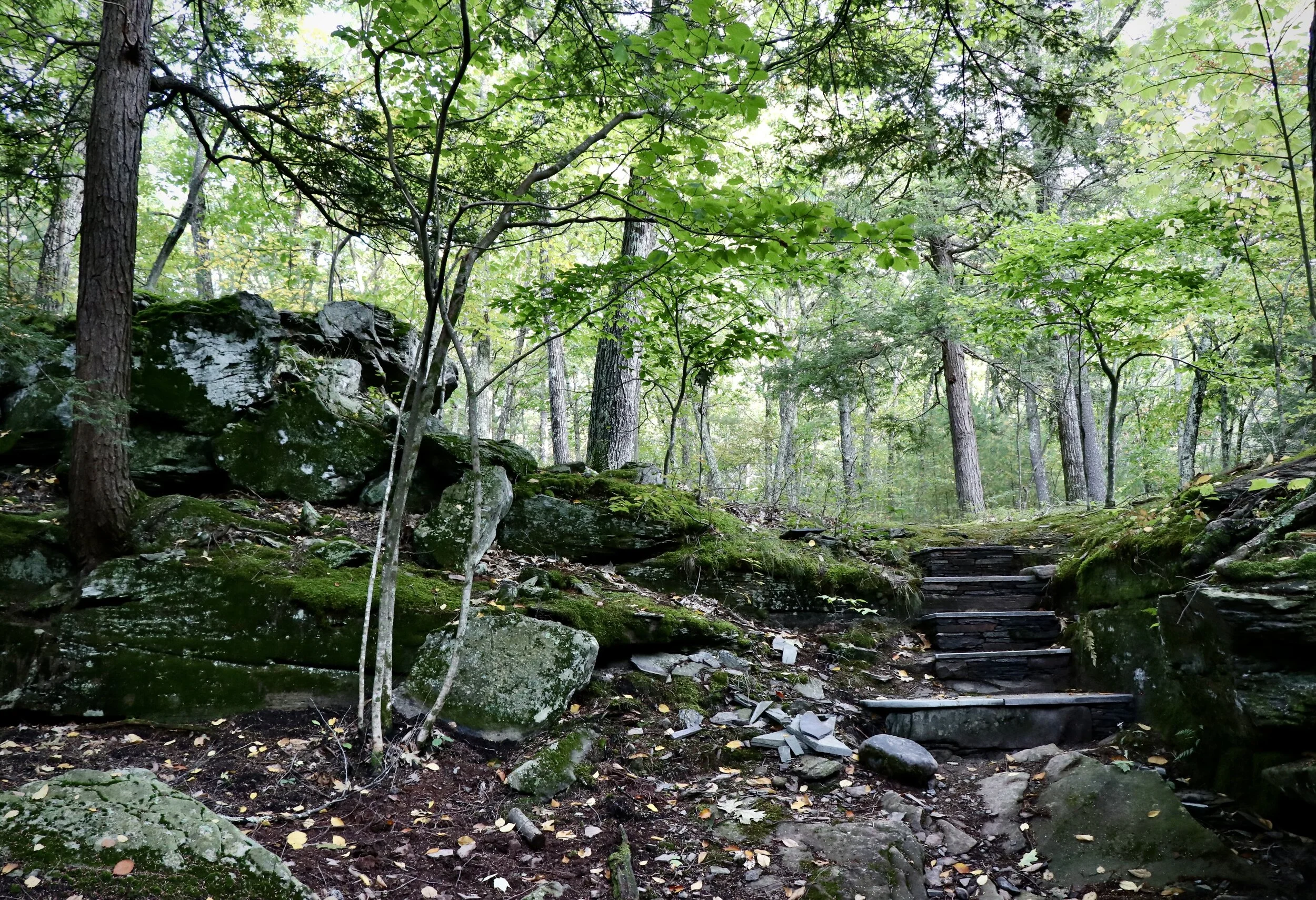 You come to a long gravel drive and take the right onto it. It is framed with birches, moss on both sides. A magnificent rock wall is to your left. You think, "What is this? Is this the right place? This can't be right, we're in the woods." Yes, you are. Welcome to Living Stone.