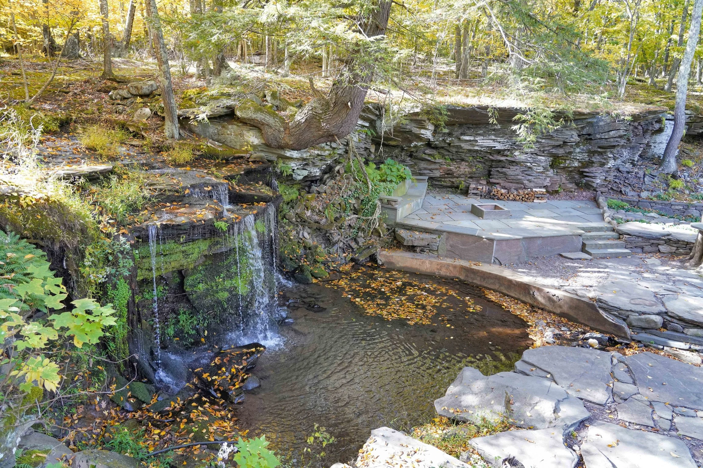 A labor of love by one of the Hudson Valley's most talented stonemasons, Django Houston, the property is filled with stone patios, fire pits, and sculptures. Wander the mossy paths along the stream, or sit around the fire on the stone bench overlooking the waterfall...everywhere you turn you and your guests will be struck by the magnificence of Nature. Living Stone is a hidden treasure that really must be seen to be believed, so contact us to book your site visit today.